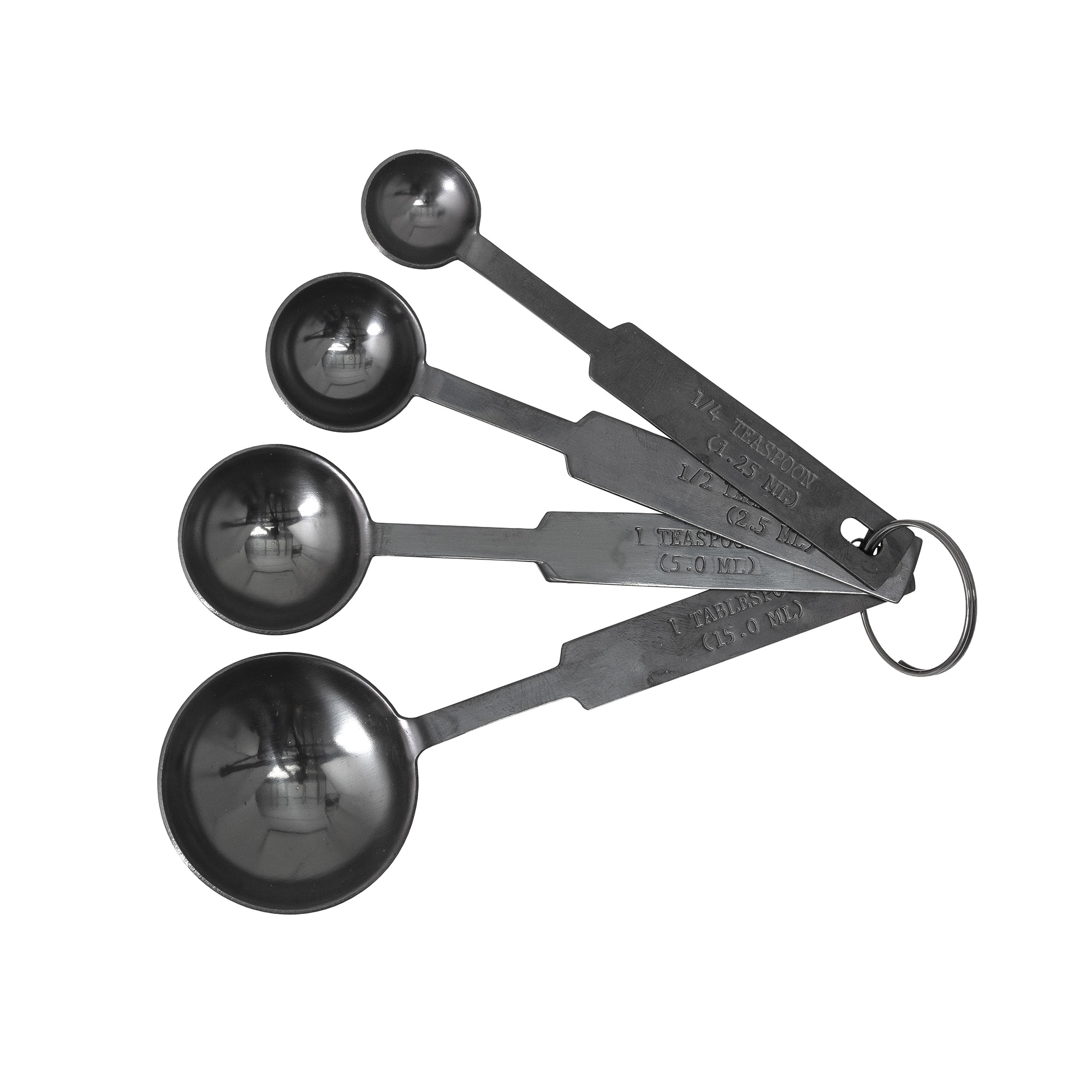 Must roostevabast terasest mõõdulusikate komplekt Bloomingvillelt. Neli erinevat suurust - 1,25/2,5/5/15 ml.